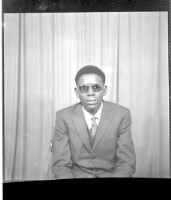 208. EAP449/2/18/208 Reference (shelfmark): EAP449/2/18/208 Title: A man standing, wearing a black suit with a shirt and black pants, facing forward. Collection Area: Endangered Archives Programme Languages: Not applicable Date Range: 2nd half od the 20th century Extent: 1 TIFF image