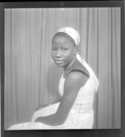 205. EAP449/2/18/205 Reference (shelfmark): EAP449/2/18/205 Title: A young girl sitting, wearing a white dress, white headscarf and necklace, facing forward. Collection Area: Endangered Archives Programme Languages: Not applicable Date Range: 2nd half od the 20th century Extent: 1 TIFF image