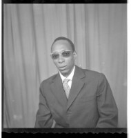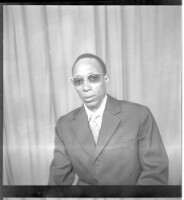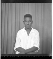 3 people, on the left a young man standing, wearing a black shirt and black pants, on the right a young lady wearing a black dress, white necklace and watch with her hair done and arms crossed, facing the studio.