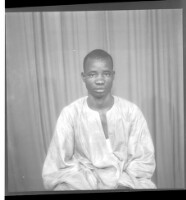 465. EAP449/2/18/465 Reference (shelfmark): EAP449/2/18/465 Title: A man wearing a white boubou sitting face-forward in the studio. Collection Area: Endangered Archives Programme Languages: Not applicable Date Range: 2nd half od the 20th century Extent: 1 TIFF image