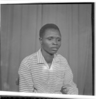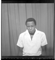 502. EAP449/2/18/502 Reference (shelfmark): EAP449/2/18/502 Title: A young man wearing a white and black long-sleeved shirt sitting on a chair in the studio. Collection Area: Endangered Archives Programme Languages: Not applicable Date Range: 2nd half od the 20th century Extent: 1 TIFF image
