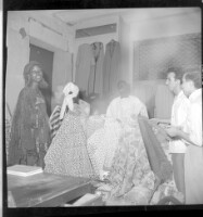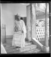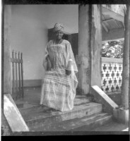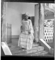 505. EAP449/2/18/505 Reference (shelfmark): EAP449/2/18/505 Title: A woman wearing a white boubou, a necklace, and a head wrap standing in the middle of the studio. Collection Area: Endangered Archives Programme Languages: Not applicable Date Range: 2nd half od the 20th century Extent: 1 TIFF image