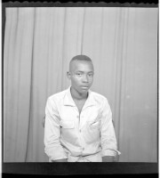 642. EAP449/2/18/642 Reference (shelfmark): EAP449/2/18/642 Title: A young man wearing a white short-sleeved shirt sitting face-forward in the studio. Collection Area: Endangered Archives Programme Languages: Not applicable Date Range: 2nd half od the 20th century Extent: 1 TIFF image