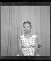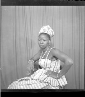 645. EAP449/2/18/645 Reference (shelfmark): EAP449/2/18/645 Title: A woman wearing a dress and head wrap with her hair styled sitting on a chair in the studio. Collection Area: Endangered Archives Programme Languages: Not applicable Date Range: 2nd half od the 20th century Extent: 1 TIFF image