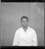 64. EAP449/2/18/64 Reference (shelfmark): EAP449/2/18/64 Title: A young man standing with a white boubou and a cross necklace, facing forward. (Double) Collection Area: Endangered Archives Programme Languages: Not applicable Date Range: 2nd half od the 20th century Extent: 1 TIFF image