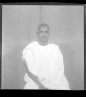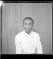 781. EAP449/2/18/781 Reference (shelfmark): EAP449/2/18/781 Title: A man sitting wearing a white boubou in the studio facing forward. Collection Area: Endangered Archives Programme Languages: Not applicable Date Range: 2nd half od the 20th century Extent: 1 TIFF image