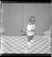 787. EAP449/2/18/787 Reference (shelfmark): EAP449/2/18/787 Title: Full shot of a little boy standing in the studio, 100 franc bill on the floor with a golden bracelet. Collection Area: Endangered Archives Programme Languages: Not applicable Date Range: 2nd half od the 20th century Extent: 1 TIFF image