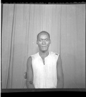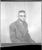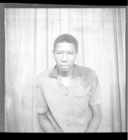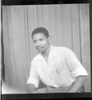 808. EAP449/2/18/808 Reference (shelfmark): EAP449/2/18/808 Title: A young man sitting wearing a black short sleeved shirt in the studio. Collection Area: Endangered Archives Programme Languages: Not applicable Date Range: 2nd half od the 20th century Extent: 1 TIFF image