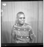 131. EAP449/2/19/131 Reference (shelfmark): EAP449/2/19/131 Title: A man wearing a t-shirt and glasses, sitting profile view in the studio. Collection Area: Endangered Archives Programme Languages: Not applicable Date Range: 2nd half od the 20th century Extent: 1 TIFF image