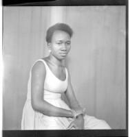 161. EAP449/2/19/161 Reference (shelfmark): EAP449/2/19/161 Title: A woman wearing a dress and sitting profile view in the studio. Collection Area: Endangered Archives Programme Languages: Not applicable Date Range: 2nd half od the 20th century Extent: 1 TIFF image