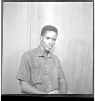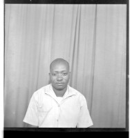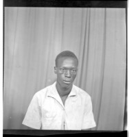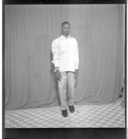 180. EAP449/2/19/180 Reference (shelfmark): EAP449/2/19/180 Title: A man wearing a shirt and pants standing profile view in the studio. Collection Area: Endangered Archives Programme Languages: Not applicable Date Range: 2nd half od the 20th century Extent: 1 TIFF image