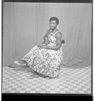 179. EAP449/2/19/179 Reference (shelfmark): EAP449/2/19/179 Title: A woman wearing a dress and chain necklace sitting profile view in the studio. Collection Area: Endangered Archives Programme Languages: Not applicable Date Range: 2nd half od the 20th century Extent: 1 TIFF image