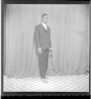 233. EAP449/2/19/233 Reference (shelfmark): EAP449/2/19/233 Title: A man wearing a suit and tie, standing profile view in the studio. Collection Area: Endangered Archives Programme Languages: Not applicable Date Range: 2nd half od the 20th century Extent: 1 TIFF image