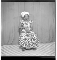 236. EAP449/2/19/236 Reference (shelfmark): EAP449/2/19/236 Title: A woman wearing a dress and head scarf sitting full frontal view in the studio. Collection Area: Endangered Archives Programme Languages: Not applicable Date Range: 2nd half od the 20th century Extent: 1 TIFF image