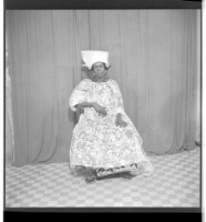 235. EAP449/2/19/235 Reference (shelfmark): EAP449/2/19/235 Title: A woman wearing a dress and head scarf, sitting full frontal view in the studio. Collection Area: Endangered Archives Programme Languages: Not applicable Date Range: 2nd half od the 20th century Extent: 1 TIFF image