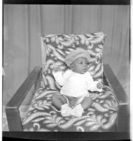 237. EAP449/2/19/237 Reference (shelfmark): EAP449/2/19/237 Title: A baby wearing a shirt and hat sitting profile view on a chair, in the studio. Collection Area: Endangered Archives Programme Languages: Not applicable Date Range: 2nd half od the 20th century Extent: 1 TIFF image