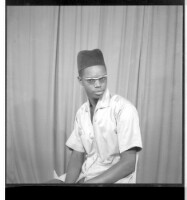 246. EAP449/2/19/246 Reference (shelfmark): EAP449/2/19/246 Title: A man wearing a shirt and glasses, sitting full frontal view in the studio. Collection Area: Endangered Archives Programme Languages: Not applicable Date Range: 2nd half od the 20th century Extent: 1 TIFF image