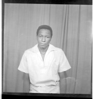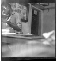 248. EAP449/2/19/248 Reference (shelfmark): EAP449/2/19/248 Title: A man wearing a shirt sis standing profile view in a room behind a table. Collection Area: Endangered Archives Programme Languages: Not applicable Date Range: 2nd half od the 20th century Extent: 1 TIFF image