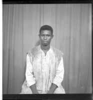272. EAP449/2/19/272 Reference (shelfmark): EAP449/2/19/272 Title: A man wearing a boubou, sitting full frontal view in the studio. Collection Area: Endangered Archives Programme Languages: Not applicable Date Range: 2nd half od the 20th century Extent: 1 TIFF image