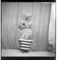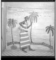 275. EAP449/2/19/275 Reference (shelfmark): EAP449/2/19/275 Title: A girl wearing a robe pagne (wrapper dress), head scarf, and chain necklace, standing profile view in the studio. Collection Area: Endangered Archives Programme Languages: Not applicable Date Range: 2nd half od the 20th century Extent: 1 TIFF image
