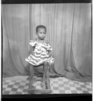 274. EAP449/2/19/274 Reference (shelfmark): EAP449/2/19/274 Title: A little girl wearing a dress and necklace, sitting full frontal view on a stool in the studio. Collection Area: Endangered Archives Programme Languages: Not applicable Date Range: 2nd half od the 20th century Extent: 1 TIFF image