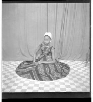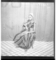 277. EAP449/2/19/277 Reference (shelfmark): EAP449/2/19/277 Title: A girl wearing a dress and head scarf, sitting profile view in the studio. Collection Area: Endangered Archives Programme Languages: Not applicable Date Range: 2nd half od the 20th century Extent: 1 TIFF image