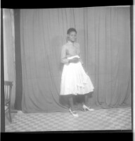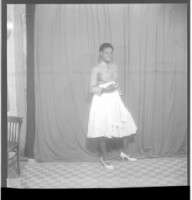 303. EAP449/2/19/303 Reference (shelfmark): EAP449/2/19/303 Title: A girl wearing a shirt and skirt, standing profile view in the studio. Collection Area: Endangered Archives Programme Languages: Not applicable Date Range: 2nd half od the 20th century Extent: 1 TIFF image