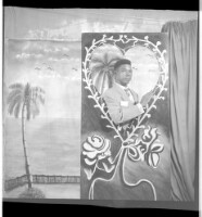 308. EAP449/2/19/308 Reference (shelfmark): EAP449/2/19/308 Title: A man wearing a jacket and tie, standing profile view behind a frame in the studio. Collection Area: Endangered Archives Programme Languages: Not applicable Date Range: 2nd half od the 20th century Extent: 1 TIFF image