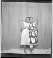 311. EAP449/2/19/311 Reference (shelfmark): EAP449/2/19/311 Title: Two women wearing dresses, head scarves, and necklaces, standing profile view in the studio. Collection Area: Endangered Archives Programme Languages: Not applicable Date Range: 2nd half od the 20th century Extent: 1 TIFF image