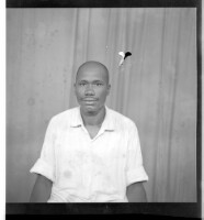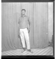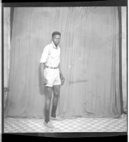 320. EAP449/2/19/320 Reference (shelfmark): EAP449/2/19/320 Title: A man wearing a shirt and shorts, standing profile view in the studio. Collection Area: Endangered Archives Programme Languages: Not applicable Date Range: 2nd half od the 20th century Extent: 1 TIFF image