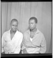 319. EAP449/2/19/319 Reference (shelfmark): EAP449/2/19/319 Title: Two boys wearing shirts and pants, both sitting full frontal view in the studio. Collection Area: Endangered Archives Programme Languages: Not applicable Date Range: 2nd half od the 20th century Extent: 1 TIFF image