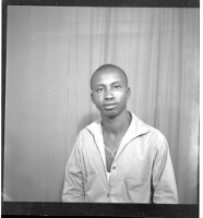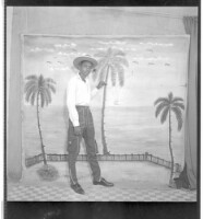 338. EAP449/2/19/338 Reference (shelfmark): EAP449/2/19/338 Title: A man wearing a shirt, pants, and a hat, standing profile view in the studio. Collection Area: Endangered Archives Programme Languages: Not applicable Date Range: 2nd half od the 20th century Extent: 1 TIFF image