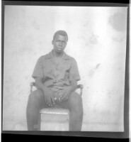 332. EAP449/2/19/332 Reference (shelfmark): EAP449/2/19/332 Title: A man wearing a shirt and shorts, sitting full frontal view in the studio. Collection Area: Endangered Archives Programme Languages: Not applicable Date Range: 2nd half od the 20th century Extent: 1 TIFF image