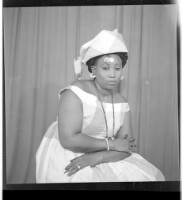 A photograph of five children. Three girls are wearing dresses; two of which are standing profile view and the other is standing full frontal view in the studio. They are in front of two boys who are wearing shirts and shorts, standing full frontal view