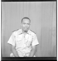 391. EAP449/2/19/391 Reference (shelfmark): EAP449/2/19/391 Title: A man wearing a military uniform, sitting full frontal view in the studio. Collection Area: Endangered Archives Programme Languages: Not applicable Date Range: 2nd half od the 20th century Extent: 1 TIFF image