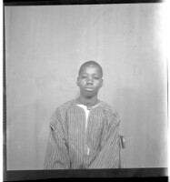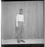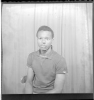 399. EAP449/2/19/399 Reference (shelfmark): EAP449/2/19/399 Title: A boy wearing a shirt and pants, standing profile view in the studio. Collection Area: Endangered Archives Programme Languages: Not applicable Date Range: 2nd half od the 20th century Extent: 1 TIFF image