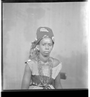 394. EAP449/2/19/394 Reference (shelfmark): EAP449/2/19/394 Title: A woman wearing a dress, headscarf, and necklaces, sitting full frontal view in the studio. Collection Area: Endangered Archives Programme Languages: Not applicable Date Range: 2nd half od the 20th century Extent: 1 TIFF image