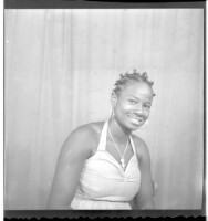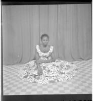 400. EAP449/2/19/400 Reference (shelfmark): EAP449/2/19/400 Title: A woman wearing a dress and necklace, sitting full frontal view in the studio. Collection Area: Endangered Archives Programme Languages: Not applicable Date Range: 2nd half od the 20th century Extent: 1 TIFF image