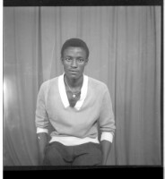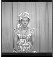 426. EAP449/2/19/426 Reference (shelfmark): EAP449/2/19/426 Title: A woman wearing a dress, headscarf, and necklaces, sitting full frontal view in the studio. Collection Area: Endangered Archives Programme Languages: Not applicable Date Range: 2nd half od the 20th century Extent: 1 TIFF image
