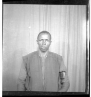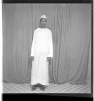 424. EAP449/2/19/424 Reference (shelfmark): EAP449/2/19/424 Title: A man wearing a boubou and a hat, standing full frontal view in the studio. Collection Area: Endangered Archives Programme Languages: Not applicable Date Range: 2nd half od the 20th century Extent: 1 TIFF image