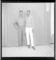 501. EAP449/2/19/501 Reference (shelfmark): EAP449/2/19/501 Title: Two men wearing shirts and pants, standing full frontal view in the studio. Collection Area: Endangered Archives Programme Languages: Not applicable Date Range: 2nd half od the 20th century Extent: 1 TIFF image