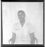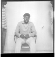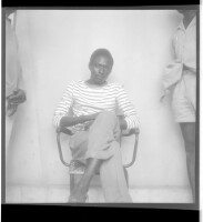 506. EAP449/2/19/506 Reference (shelfmark): EAP449/2/19/506 Title: A man wearing a shirt and pants, sitting full frontal view in the studio. Collection Area: Endangered Archives Programme Languages: Not applicable Date Range: 2nd half od the 20th century Extent: 1 TIFF image