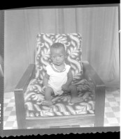 592. EAP449/2/19/592 Reference (shelfmark): EAP449/2/19/592 Title: A baby wearing a t-shirt, sitting full frontal view on a chair, taken in the studio. Collection Area: Endangered Archives Programme Languages: Not applicable Date Range: 2nd half od the 20th century Extent: 1 TIFF image