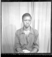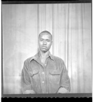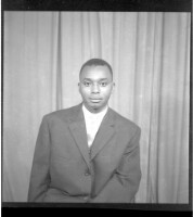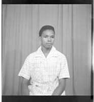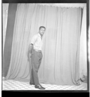 659. EAP449/2/19/659 Reference (shelfmark): EAP449/2/19/659 Title: A man wearing a shirt and pants standing profile view in the studio. Collection Area: Endangered Archives Programme Languages: Not applicable Date Range: 2nd half od the 20th century Extent: 1 TIFF image