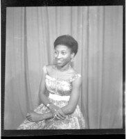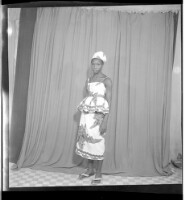 658. EAP449/2/19/658 Reference (shelfmark): EAP449/2/19/658 Title: A girl wearing a dress and a necklace, standing profile view in the studio. Collection Area: Endangered Archives Programme Languages: Not applicable Date Range: 2nd half od the 20th century Extent: 1 TIFF image