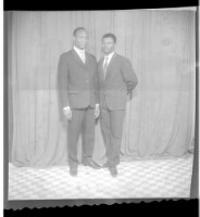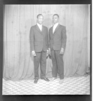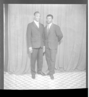 662. EAP449/2/19/662 Reference (shelfmark): EAP449/2/19/662 Title: Two men wearing suits and ties, standing profile view in the studio. Collection Area: Endangered Archives Programme Languages: Not applicable Date Range: 2nd half od the 20th century Extent: 1 TIFF image