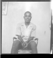 667. EAP449/2/19/667 Reference (shelfmark): EAP449/2/19/667 Title: A man wearing a shirt, sitting full frontal view in the studio. Collection Area: Endangered Archives Programme Languages: Not applicable Date Range: 2nd half od the 20th century Extent: 1 TIFF image