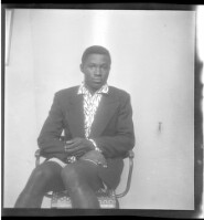 668. EAP449/2/19/668 Reference (shelfmark): EAP449/2/19/668 Title: A man wearing a jacket and shorts, sitting full frontal view in the studio. Collection Area: Endangered Archives Programme Languages: Not applicable Date Range: 2nd half od the 20th century Extent: 1 TIFF image