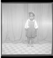 669. EAP449/2/19/669 Reference (shelfmark): EAP449/2/19/669 Title: A boy wearing overalls and a hat, standing full frontal view in the studio. Collection Area: Endangered Archives Programme Languages: Not applicable Date Range: 2nd half od the 20th century Extent: 1 TIFF image