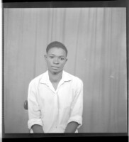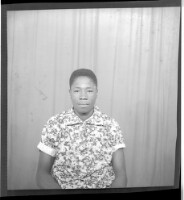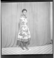 688. EAP449/2/19/688 Reference (shelfmark): EAP449/2/19/688 Title: A girl wearing a dress and standing profile view in the studio. Collection Area: Endangered Archives Programme Languages: Not applicable Date Range: 2nd half od the 20th century Extent: 1 TIFF image